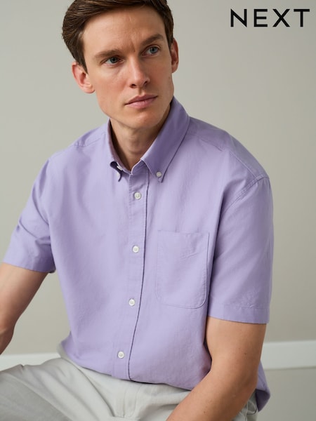 Lilac Purple Short Sleeve Lightweight Pocket Oxford Shirt
