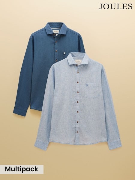 Linen Blend Blue Long Sleeve Shirts 2 Pack