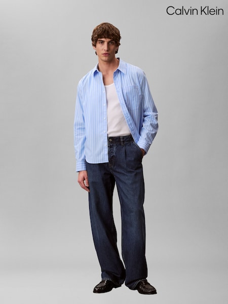 Calvin Klein Blue Woven Cotton Stretch Shirt