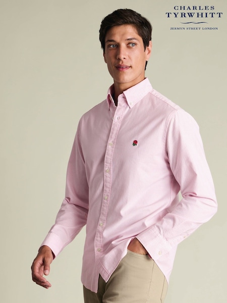 Charles Tyrwhitt Pink Stripe Button-Down Stretch Washed Oxford Slim Fit Shirt
