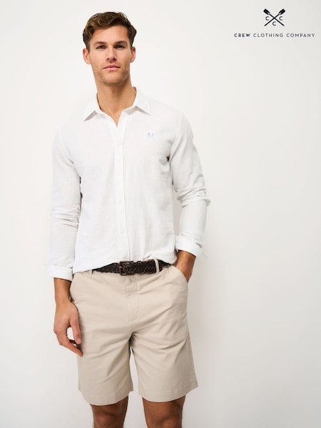 Crew Clothing White Long-Sleeve Linen Shirt