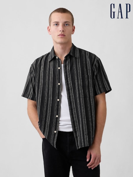 Gap Black Stripe Textured Linen-Cotton Shirt