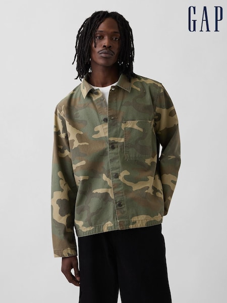 Gap Green Canvas Denim Camo Utility Shirt
