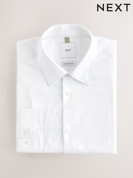 White Regular Fit Cotton Rich Textured Easy Care Smart Shirt