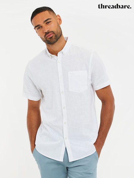 Threadbare White Short Sleeve Linen Blend Shirt
