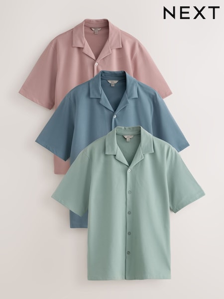 Pink / Blue / Green Regular Fit Short Sleeve Revere Collar Jersey Shirts 3 Pack