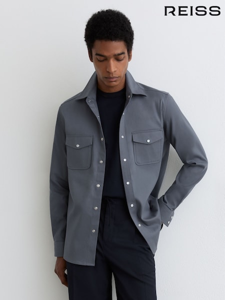 Reiss Airforce Blue Mcrae Twin-Pocket Overshirt with Stretch