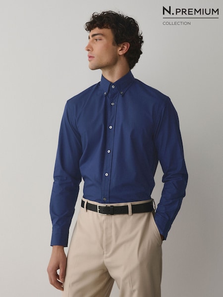 Blue Regular Fit 100% Cotton N.Premium Twill Smart Shirt