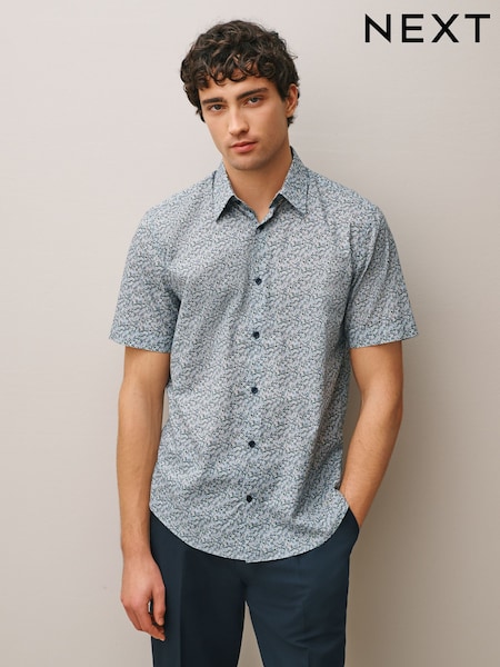 Blue Ditsy Regular Fit Cotton Short Sleeve Print Shirt