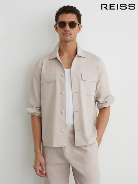 Reiss Stone Medina Premium Interlock Zip-Through Overshirt