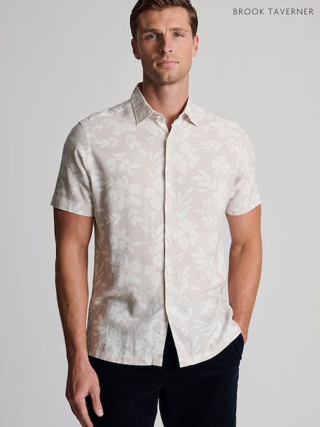 Brook Taverner Natural Print Cotton Short Sleeve Shirt