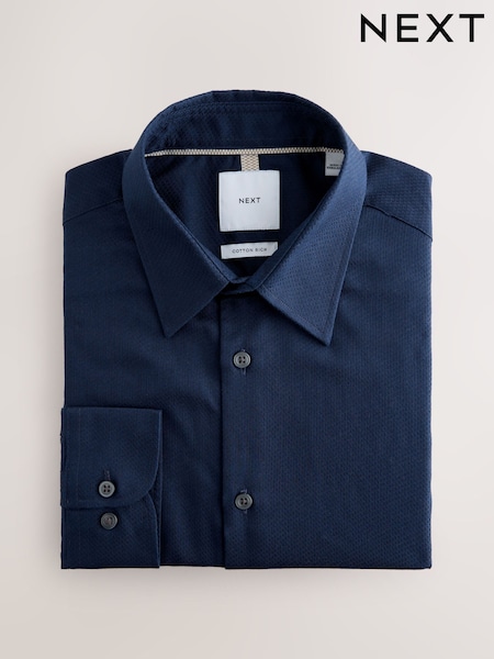 Navy Blue Slim Fit Cotton Rich Textured Easy Care Smart Shirt