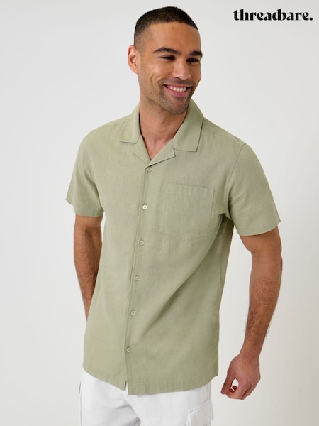 Threadbare Green Linen Cotton Blend Short Sleeve Shirt