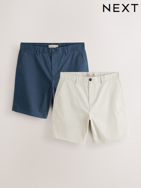 Navy/Stone Straight Fit Stretch Chino Shorts 2 Pack