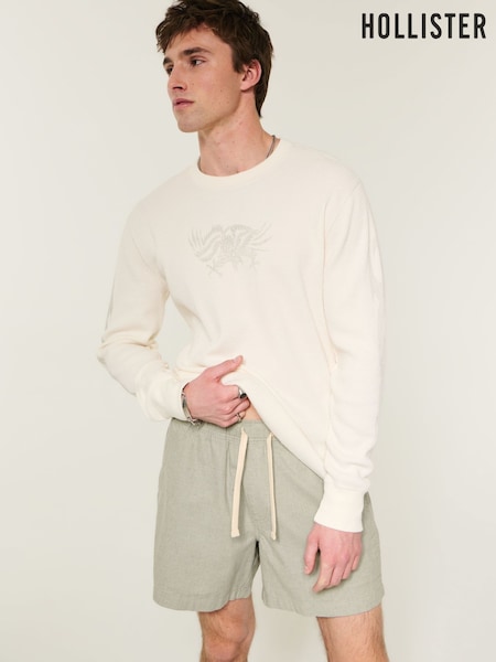 Hollister Green Linen Mid Thigh Pull-On Shorts