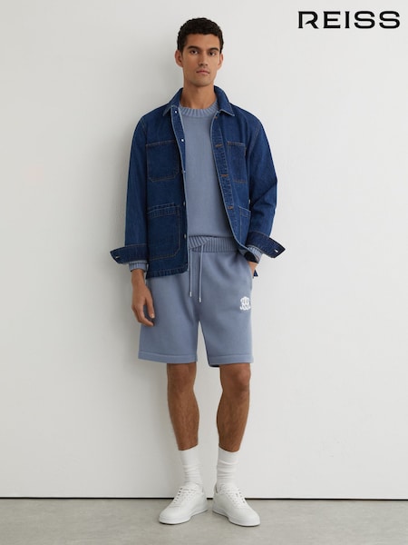 Reiss Navy Riley Monogram-Embroidered Relaxed Knit Shorts