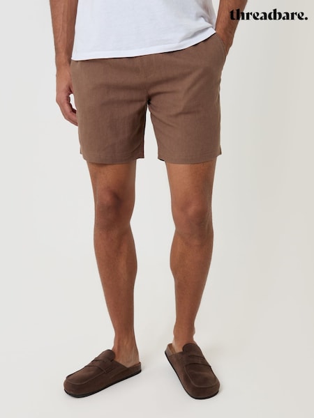 Threadbare Brown Shorter Length Elasticated Waist Linen Blend Shorts