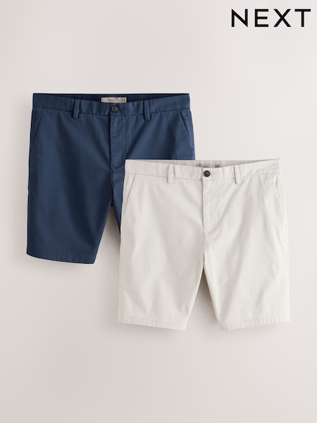 Ink Blue/Bone Slim Fit Stretch Chino Shorts 2 Pack