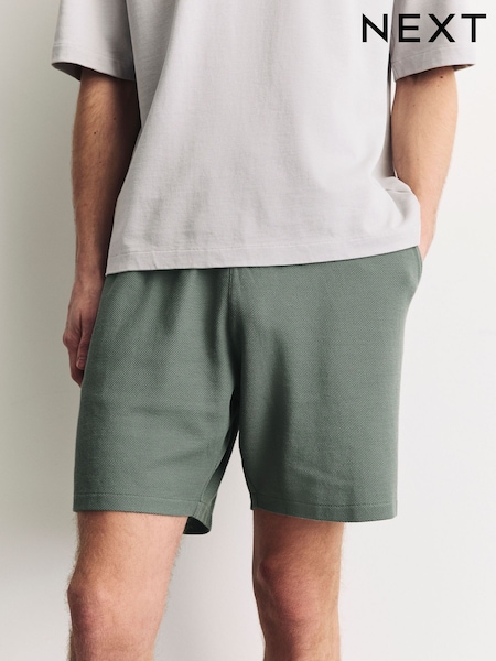 Sage Green Textured Elasticated Waist Cotton Shorts