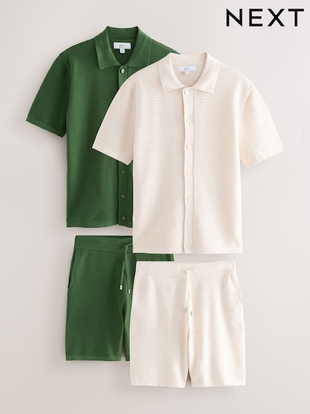 Green/White Textured Knitted Shirts and Shorts Set 2 Pack