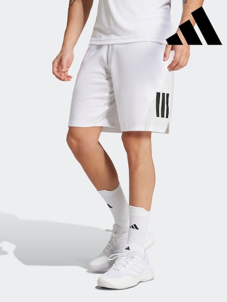 adidas White Club Tennis Climacool 3-Stripes 7 Inch Shorts