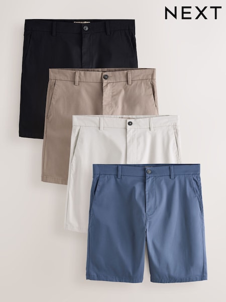 Grey/Blue/Stone Straight Fit Stretch Chino Shorts 4 Pack