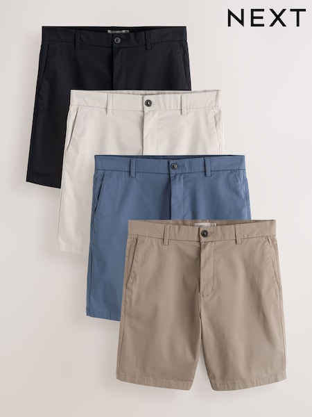 Grey/Blue/Stone Slim Fit Stretch Chino Shorts 4 Pack