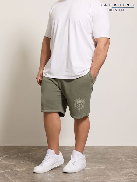 BadRhino Big & Tall Green Skull Print Shorts