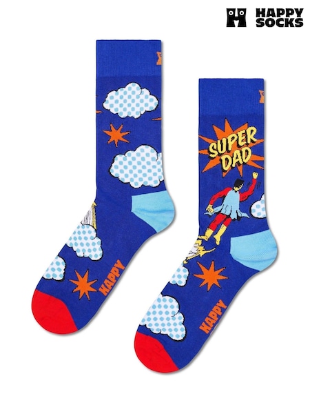 Happy Socks Blue Flying Super Dad Socks 1 Pack