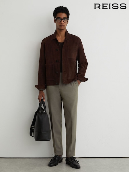 Reiss Walnut Brown Dobby Cotton Pique Chino Trousers