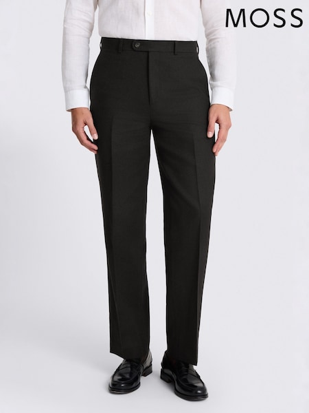 MOSS Black Tailored Fit Twill Linen Suit Trousers
