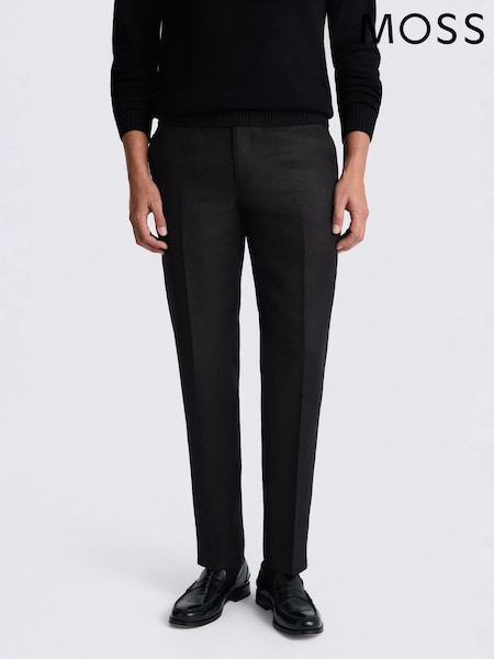 MOSS Black Tailored Fit Twill Linen Suit Trousers