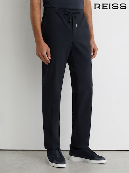 Reiss Navy Athlete Jersey Tailored-Fit Drawstring Trousers