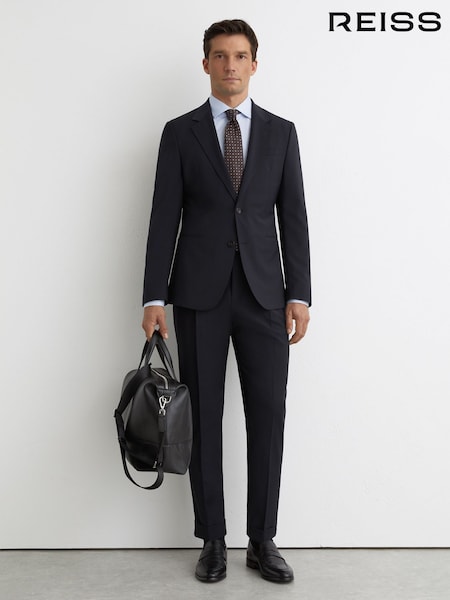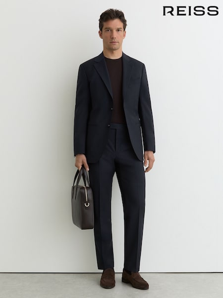 Reiss Navy Entrepreneur Wool Twill Suit Classic-Fit Trousers