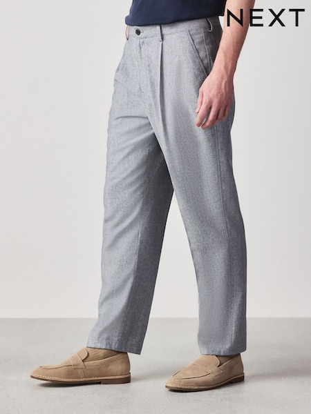 Chambray Blue Relaxed Fit Cotton Suit Trousers