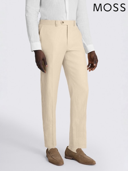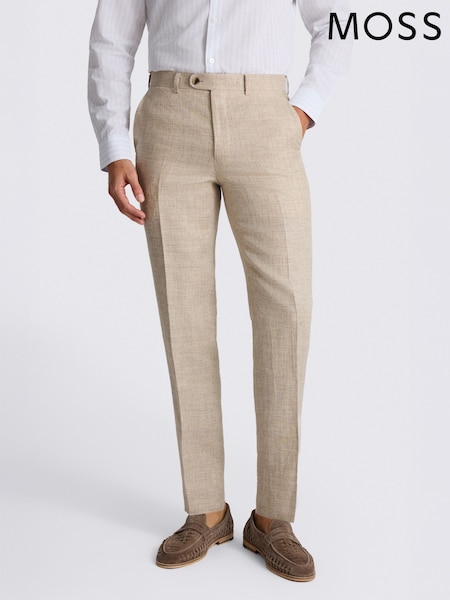 MOSS Neutral Tailored Fit Delave Linen Suit Trousers