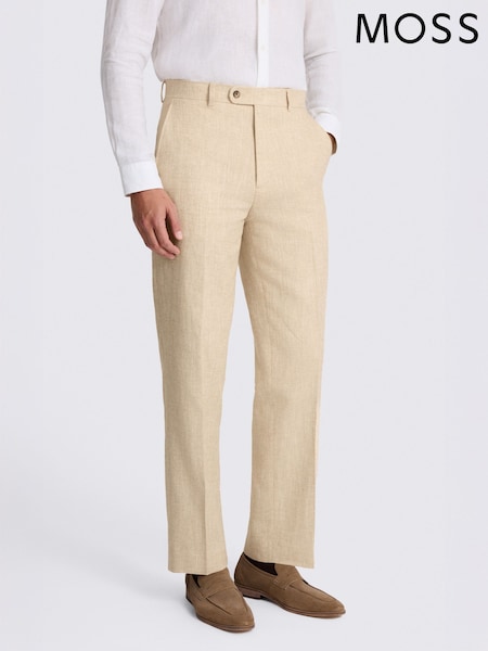 MOSS Ecru Relaxed Fit Twill Linen Cotton Suit Trousers
