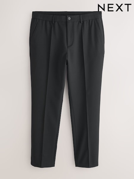 Black Slim Fit Elasticated Waist Motionflex Stretch Smart Trousers