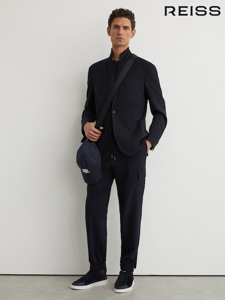 Reiss Navy Hidden Slim-Leg Drawstring Cargo Trousers