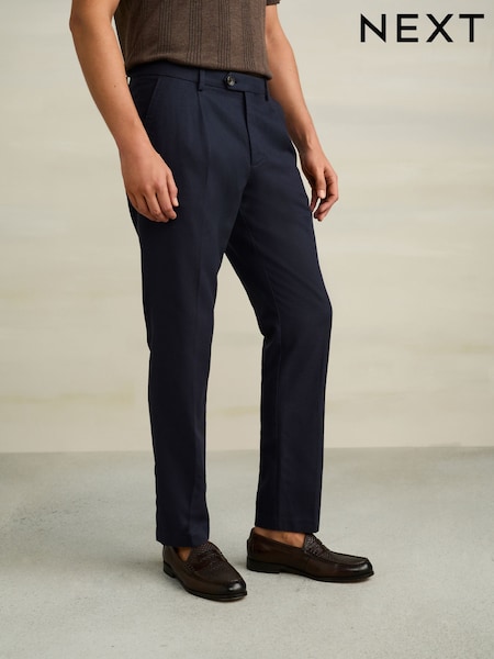 Navy Textured Cotton Smart Chinos