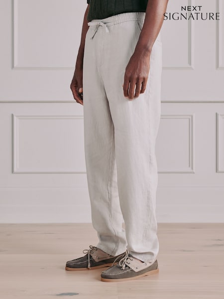 Stone Regular Tapered Fit Signature Linen Trousers With Elasticated Waist