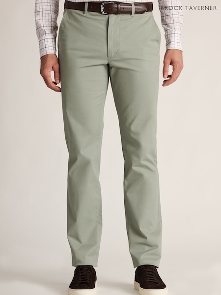 Brook Taverner Green Regular Fit Cotton Stretch Chinos