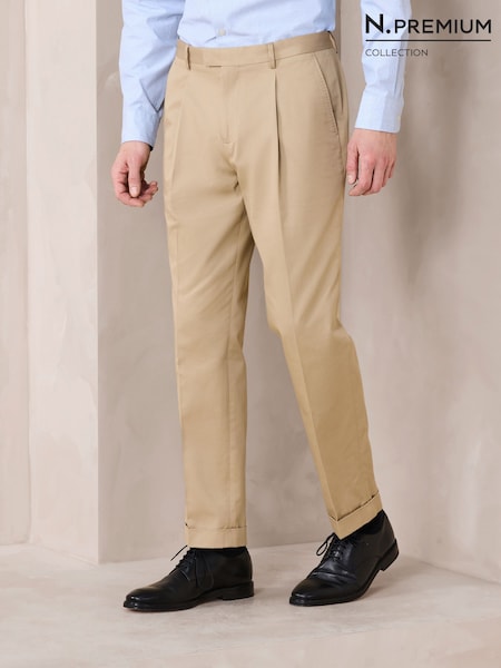 Stone Regular Tapered Fit N. Premium Smart Twin Pleat Chino Trousers