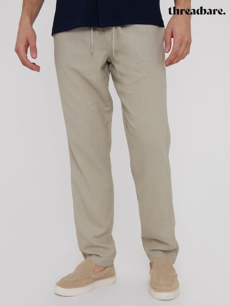 Threadbare Natural Linen Blend Drawcord Trousers