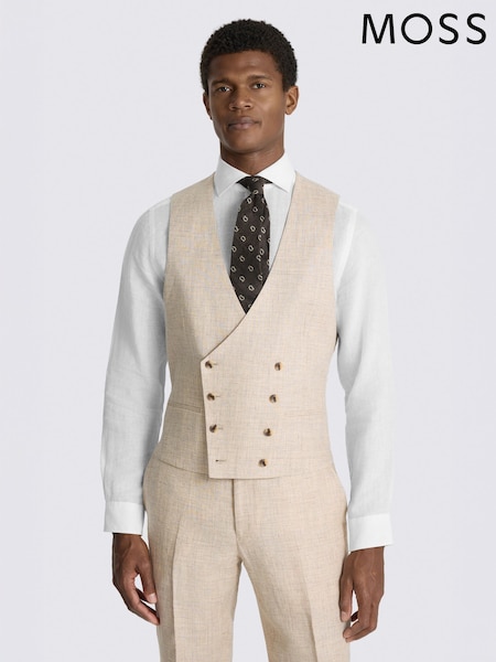 MOSS Oatmeal Tailored Fit Linen Suit Waistcoat