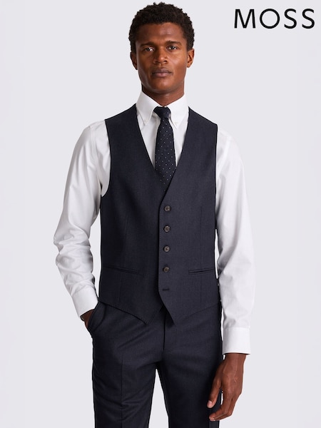 MOSS Blue Tailored Plain Italian Suit Waistcoat