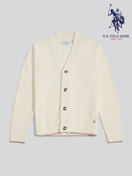 U.S. Polo Assn. Cream Open Collar Knitted Cardigan
