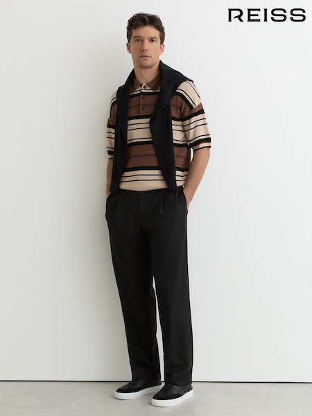 Reiss Camel Multi Abbot Stripe Knit Half-Button Polo Shirt