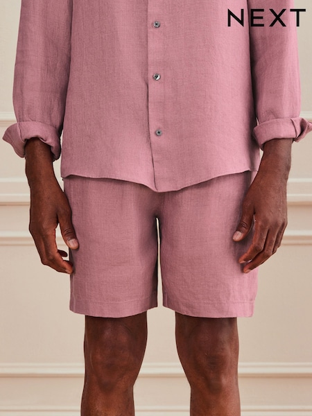 Blue Regular Fit Signature Twill Texture 100% Linen Short Sleeve Shirt