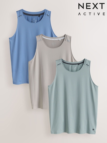 Steel Blue, Sage Green, Grey Vest Active Gym Mesh T-Shirts 3 Pack